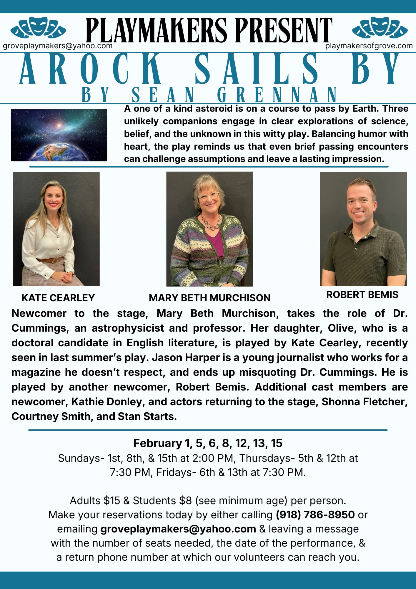 Reservations: Leave a message at 918 786 8950; or email: groveplaymakers@yahoo.com